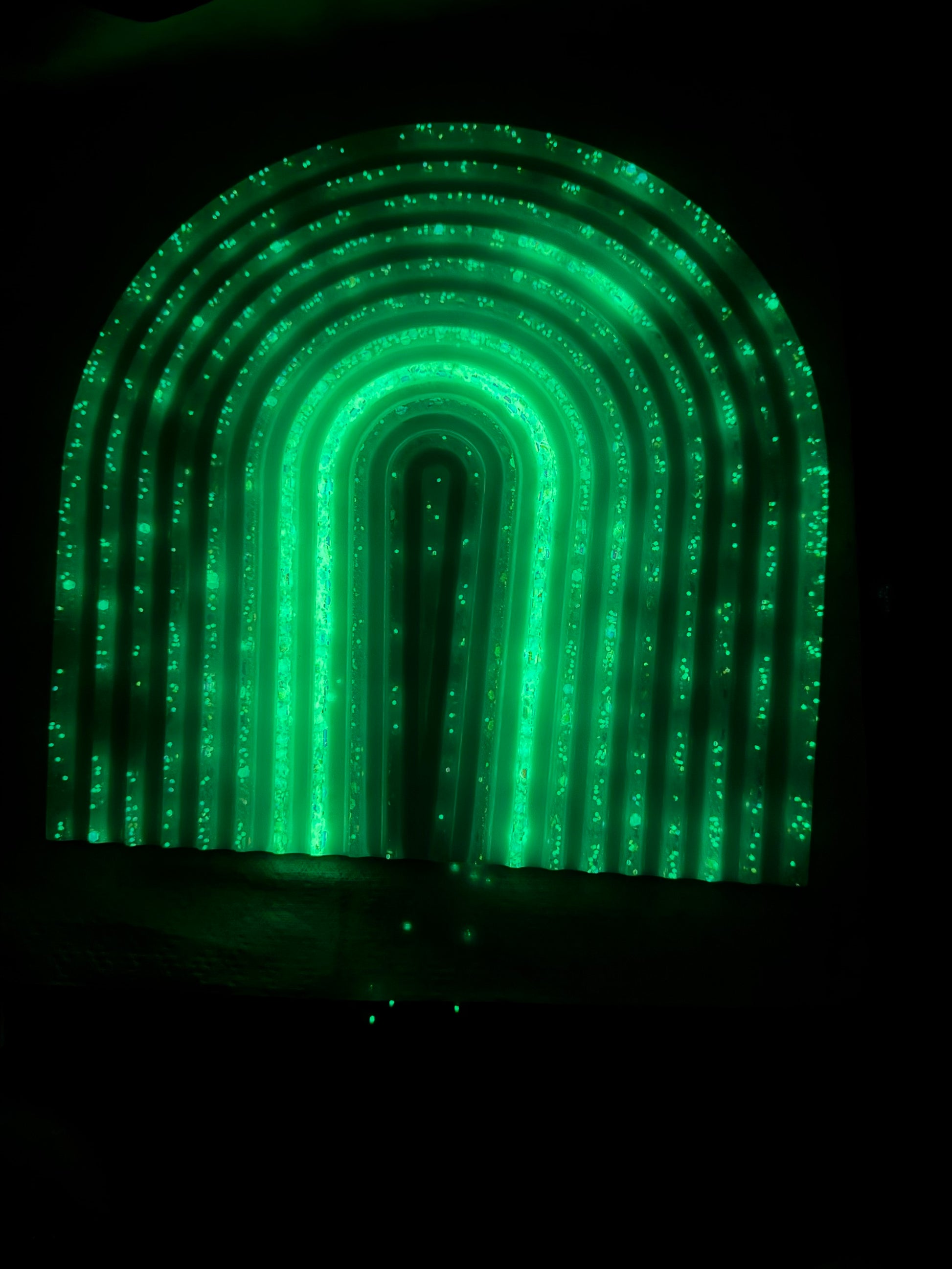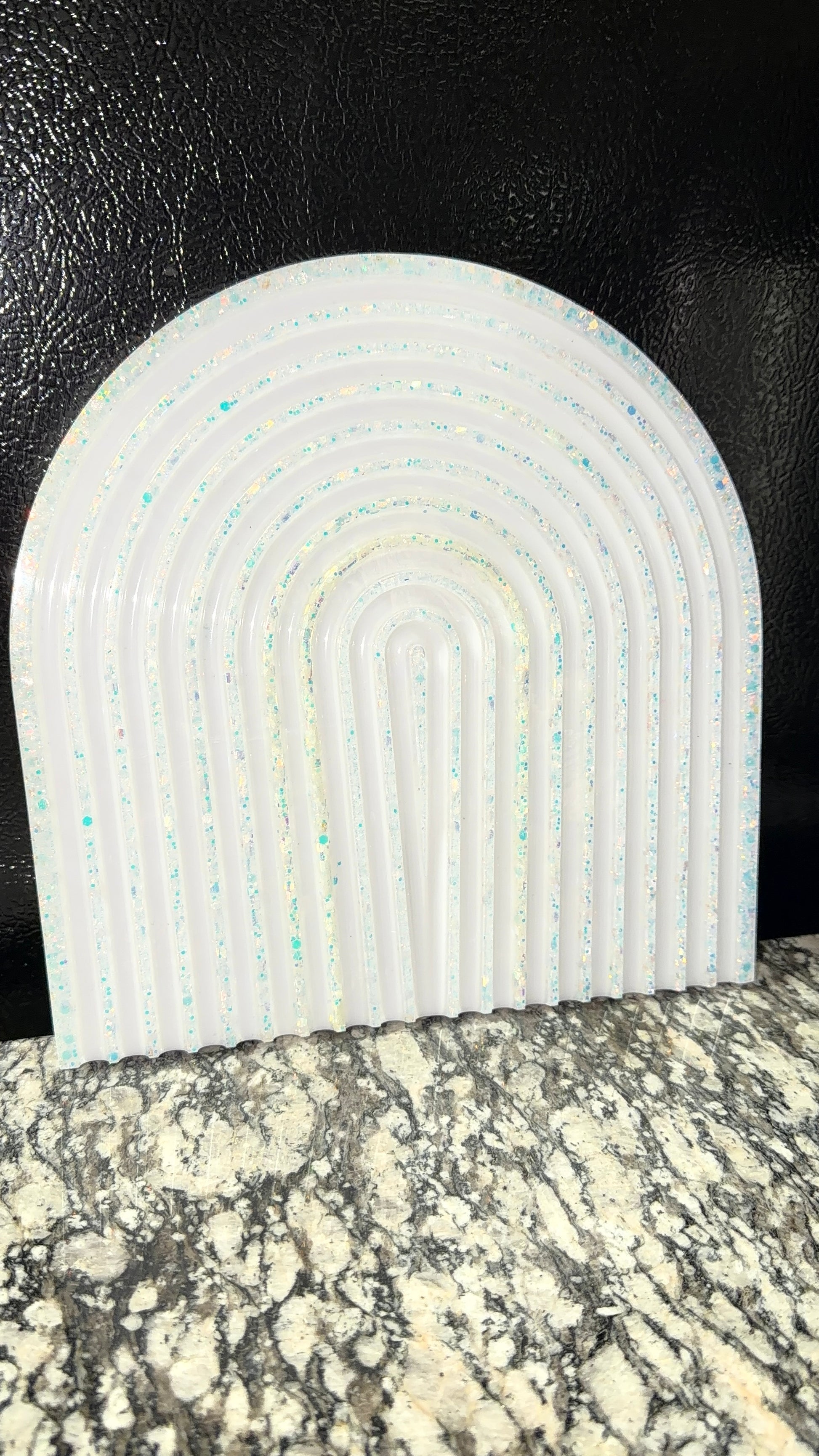 Crafted with a rich, creamy pigment and infused with glow holographic glitter, this arch captures light beautifully—shifting, sparkling, and giving off a soft luminous glow. Each piece is hand-poured with care, making every arch unique in its shimmer and personality.