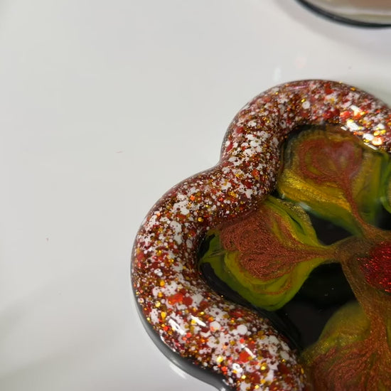 Expertly handcrafted with vibrant pigments, the Bronzy Bloom Dish serves as a versatile statement piece. Use it as a coaster, for storing small jewelry or crystals, or even as a candle holder. Elevate your home decor with this unique, multi-functional dish.