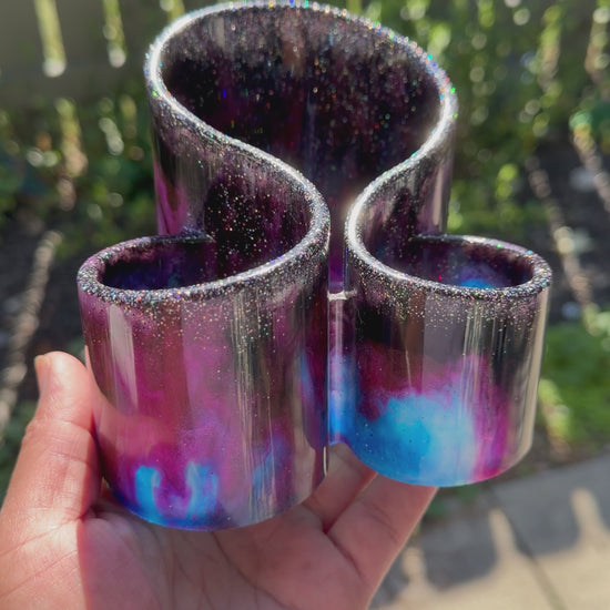 This handmade Galaxy Dream Resin Organizer features a cosmic swirl of deep purples, blues, and shimmering glitter — perfect for holding brushes, pens, or makeup tools. Crafted with premium Craft Resin and Eye Candy pigments, each piece is one-of-a-kind and gives your space a touch of celestial magic.