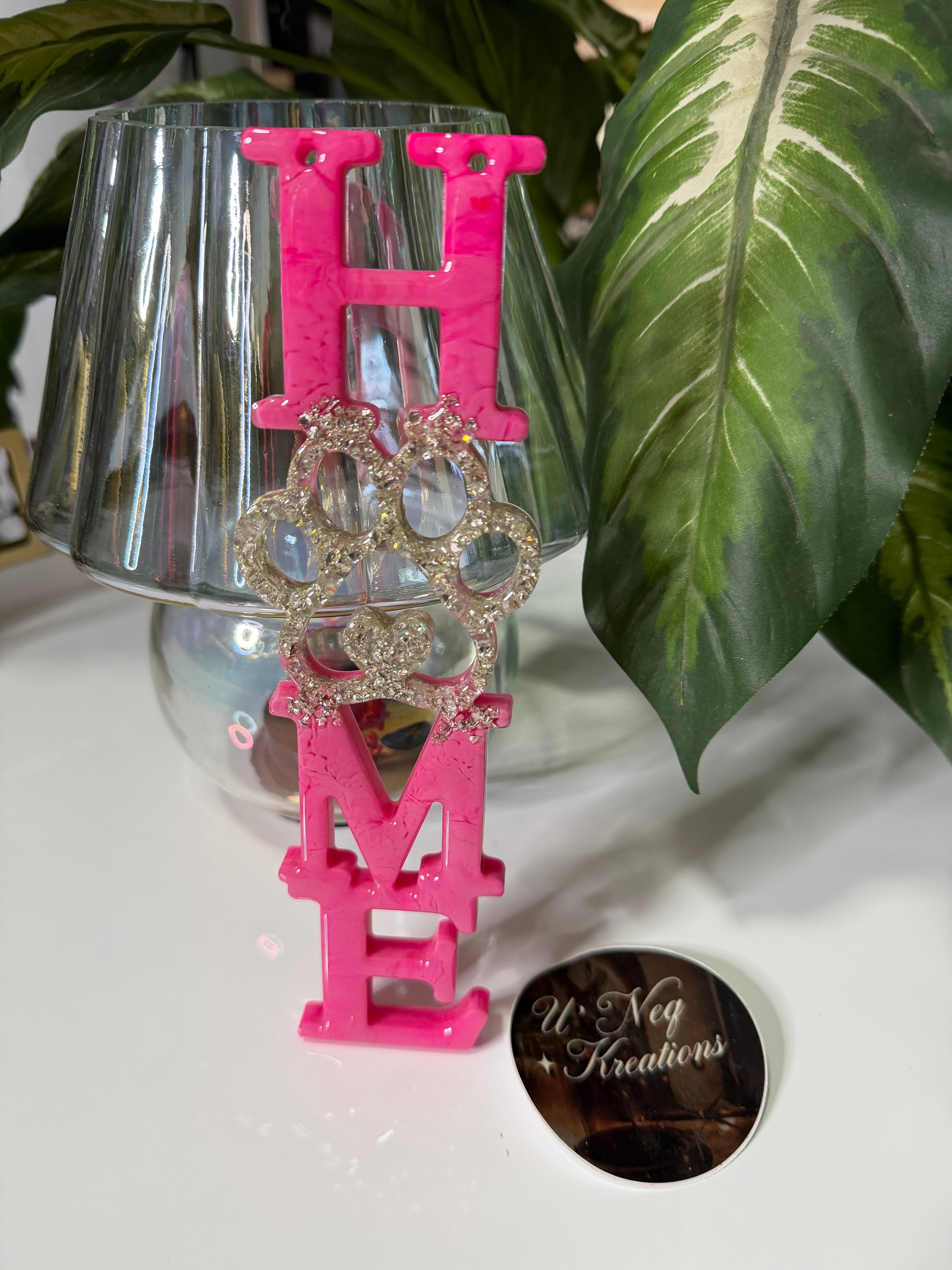 Decorate your pet's home with our handmade Pink Pet Home Sign. Adorned with sparkling crystals and crushed stones in the shape of a pet paw, this sign adds a touch of bling to any room. The unique marble design in various shades of pink adds a pop of color and style to your pet's space.