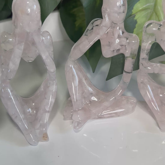Expertly handcrafted with real rose quartz crystal chips, Rose Quartz Thinkers are the perfect addition to any stand dessert table. Not only do they add a touch of natural beauty, but they also promote positive energy and calmness. Elevate your space with these one-of-a-kind handmade pieces.