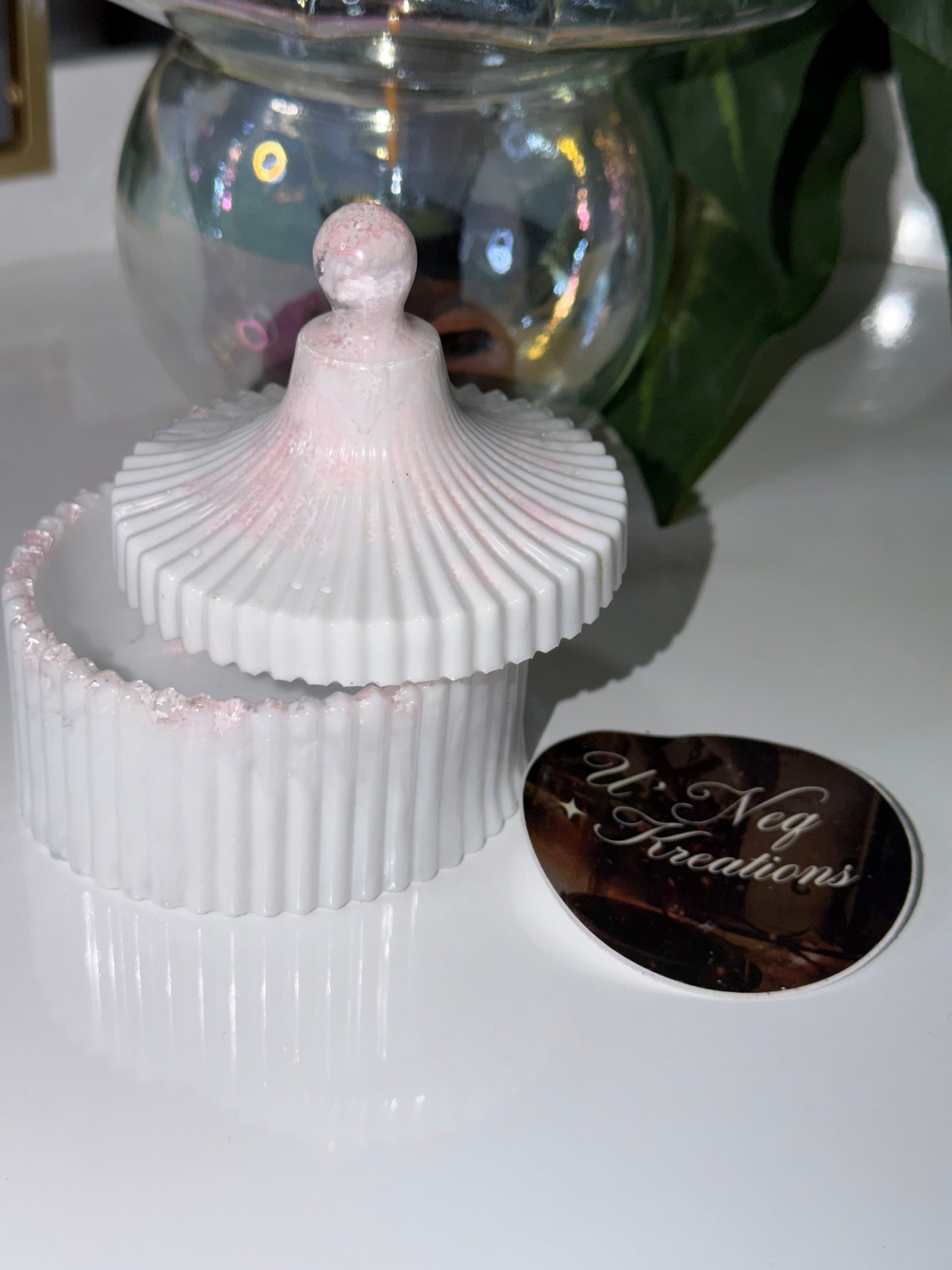 Expertly handmade with rich pigment and sparkling glitter, our Snowflake Dish is a stunning addition to any collection. Its snowflake design glows beautifully under UV light, making it perfect for displaying small jewelry, candy crystals, and other treasures. Elevate your decor with this unique and versatile dish.