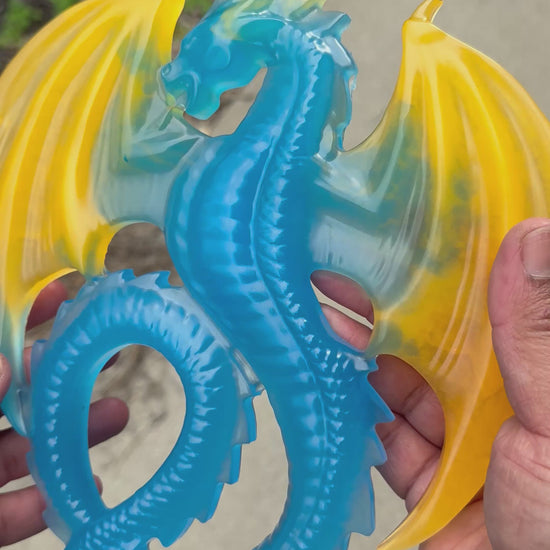 Bring the magic of fantasy to life with this one-of-a-kind handmade Glow Dragon, crafted with stunning blue and orange glow powders from Eye Candy’s sample packs. By day, this dragon shows off its bold, fiery colors—and by night, it transforms into a radiant masterpiece that glows with powerful energy.