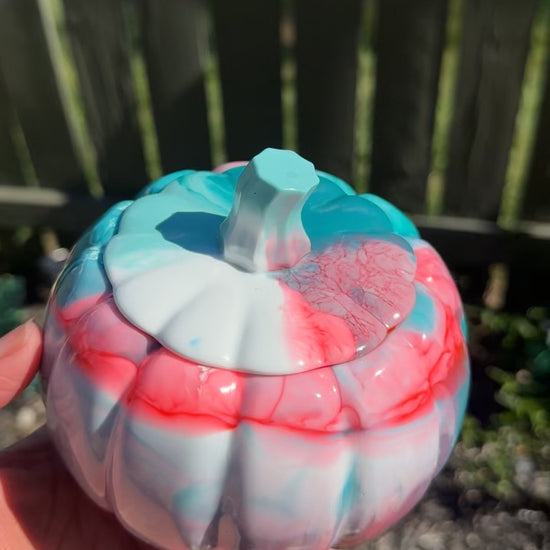 Bring bold beauty and functionality into your home with the Aurora Glow XL Pumpkin. Handcrafted with premium Eye Candy Pigment Paste, this one-of-a-kind piece features a stunning swirl of vibrant colors that makes it a true statement in any space.